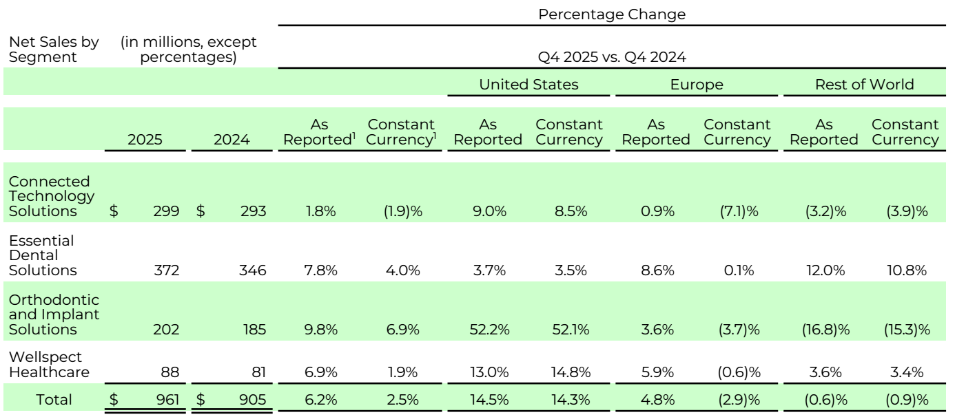 | 图源:Dentsply Sirona Fourth Quarter and Full Year 2025 Results |