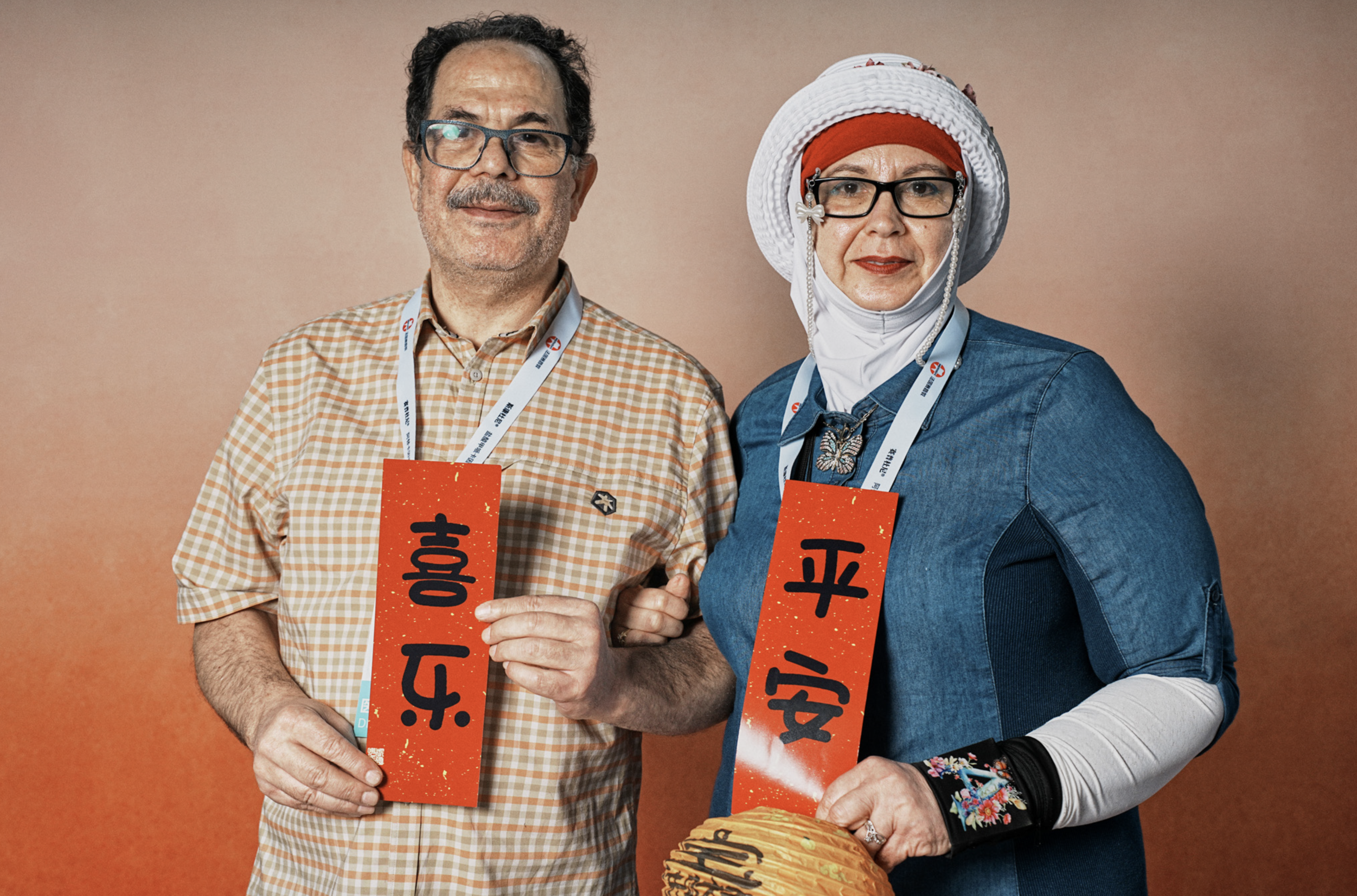 一个东南亚来的参展商,不太会说中文。选了「喜乐」那支春联,问我这个字什么意思。我说:happy。他想了一下,换成了「多财多亿」,认真地问:more money?我们都笑了。拍完照,他把打印出来的纸夹进文件夹,认真地保护好每一个角。那份东西,会跟着他回家。
