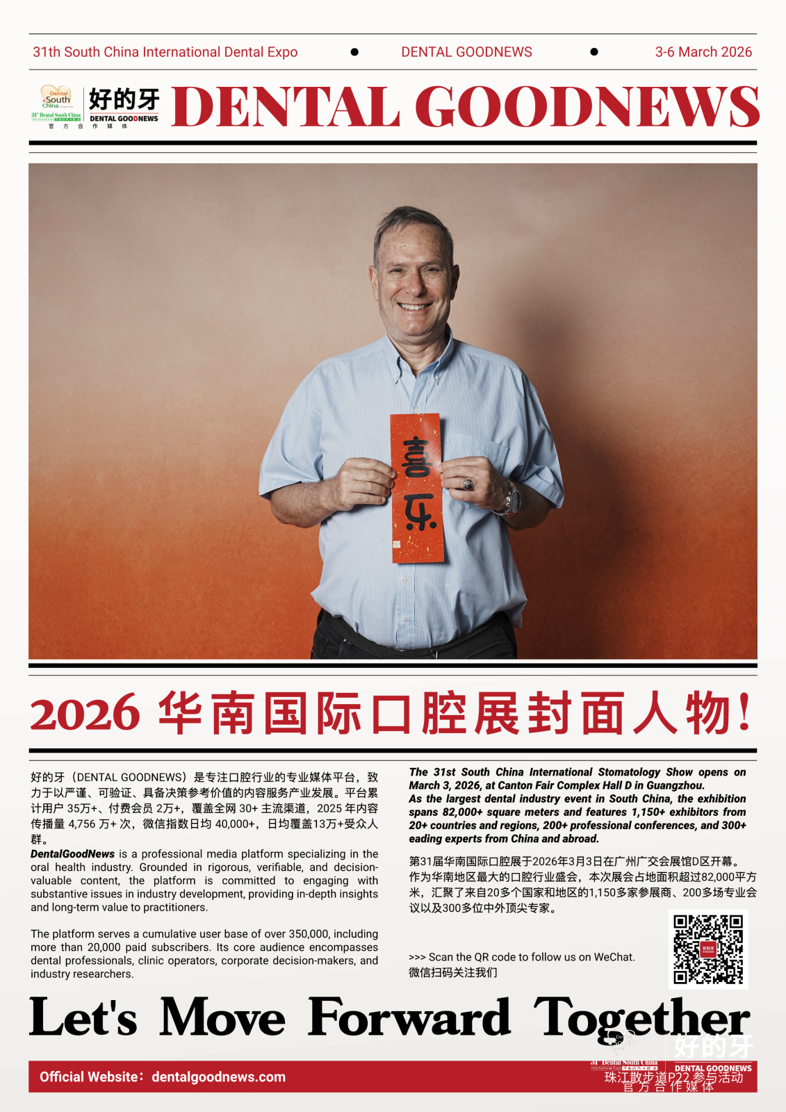 还有一对父女——女儿是牙科医生,父亲退休工人,陪她来逛展。父亲对展品毫无兴趣,但站在镜头前,他拿着「平安」那支春联,笑得很认真。成片出来,女儿截图发给了她妈妈。这张照片跟种植体没有任何关系,但它记录了一件真实发生的事:一个中国口腔行业的从业者,和她的父亲,在2026年的元宵节,在全球最重要的口腔展上,留下了一张合影。