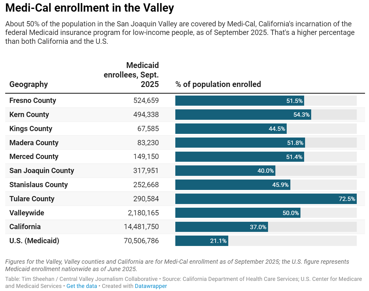 报道指出,此次政策调整对圣华金谷(San Joaquin Valley)等地区的冲击尤为显著。该地区约有一半的人口参加了Medi-Cal计划,且当地每万名居民拥有的牙医数量仅为5名,远低于全州7.6名的平均水平。加州卫生保健服务部统计显示,圣华金谷约有15.6万名无证移民通过加州的扩展政策获得了Medi-Cal资格,其中马德拉县(Madera County)受影响比例最高,达到17.2%;受影响人数最多的地区为克恩县(Kern County),共36673 人。