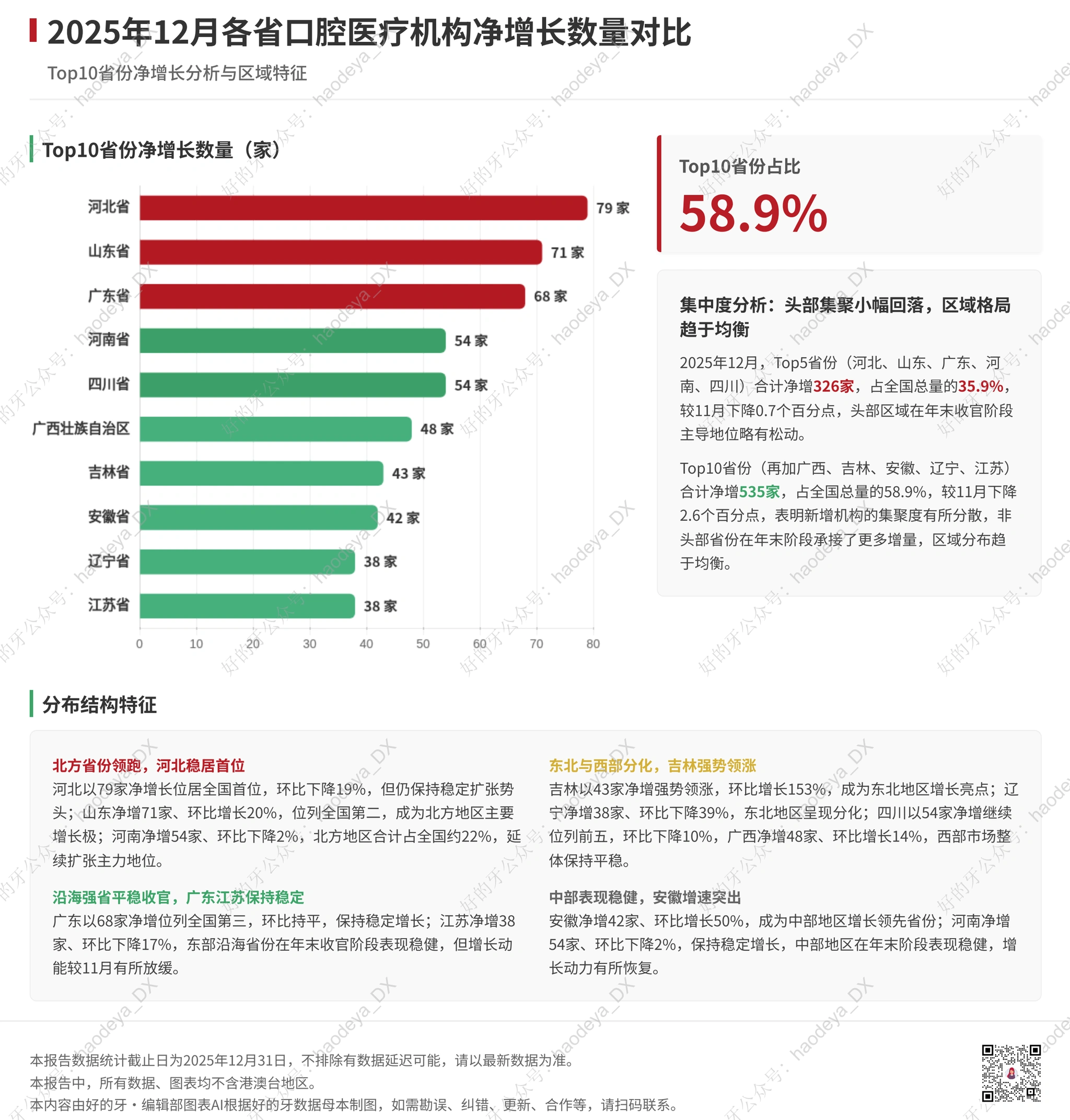 真正反常识的是净增长:全年净增约1万家。餐饮行业基本上是开一家关一家,那是饱和市场。口腔行业一年还净增一万家——需求还在,只是增量不在你以为的地方。